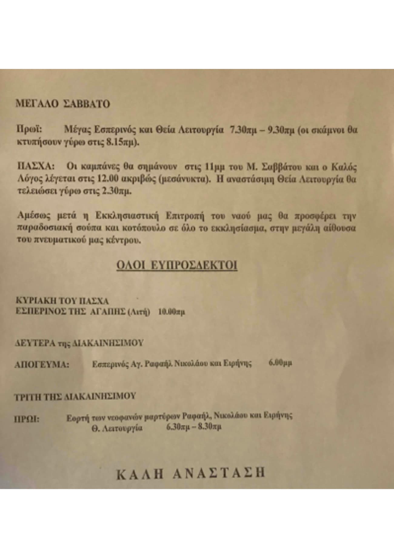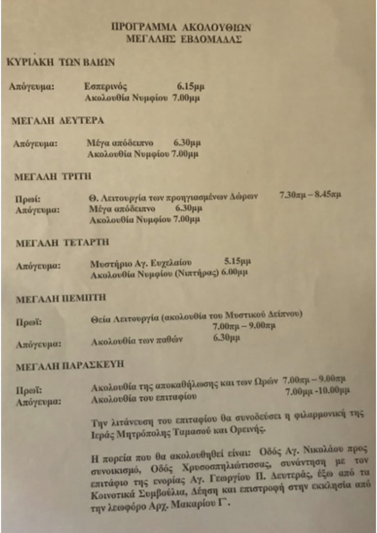 Πρόγραμμα Ακολουθιών της Μεγάλης Εβδομάδας για την εκκλησία του Αγίου Νικολάου
